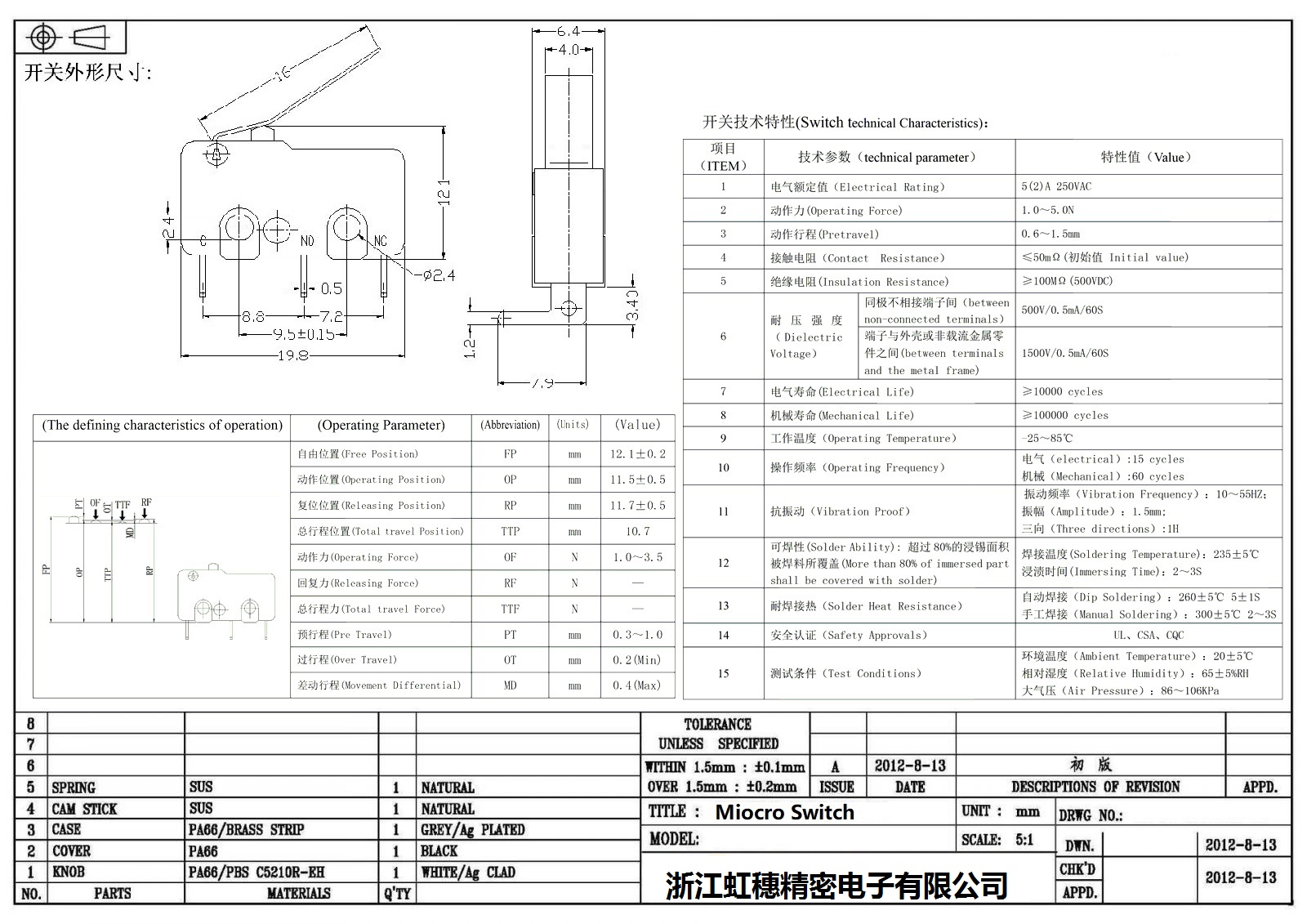 微動開關電氣特性
