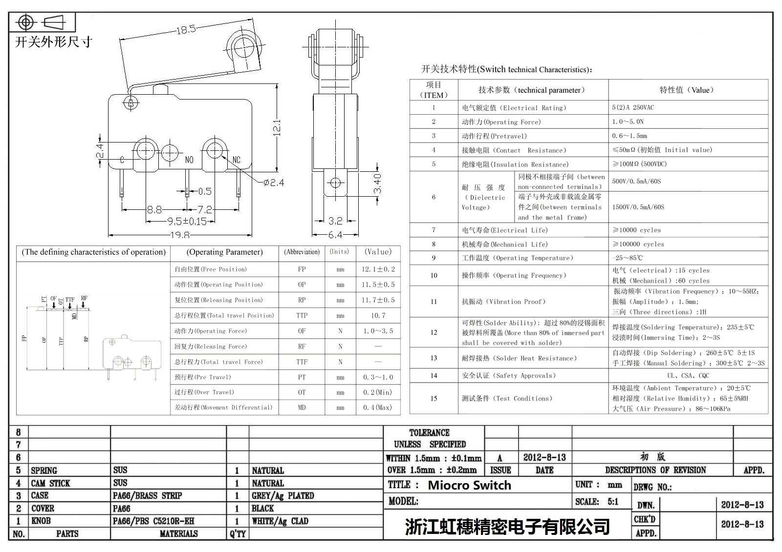 .請根據(jù)額定值電流、操作負(fù)載、驅(qū)動桿的種類、使用溫度等要求選擇合適型號的開關(guān);