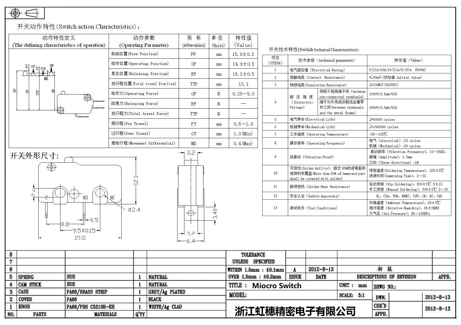 微動(dòng)開關(guān)電氣特性