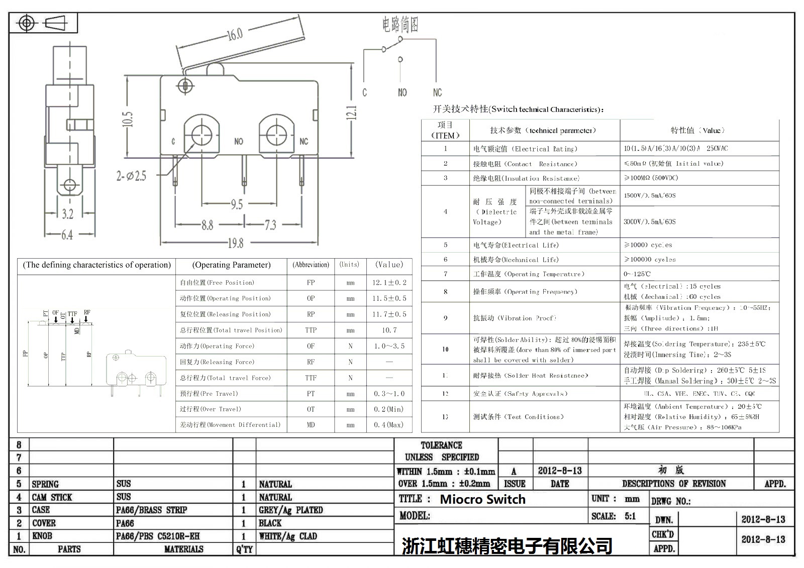 微動開關電氣特性