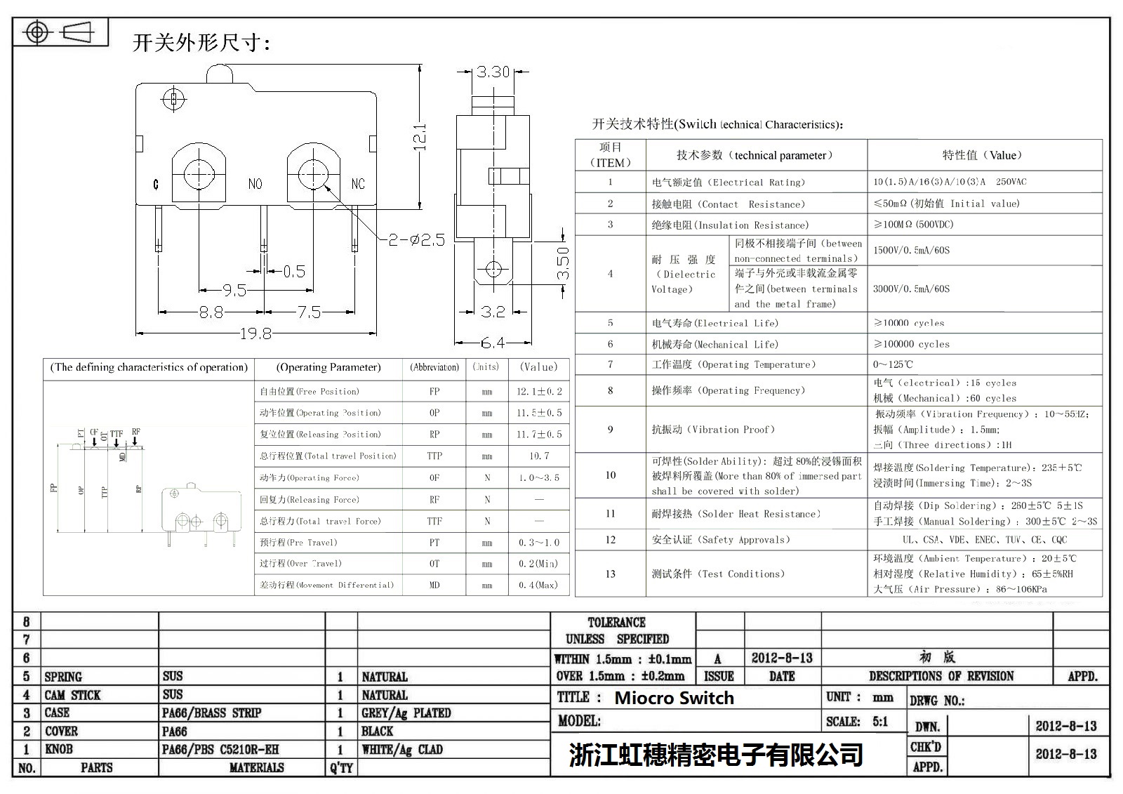 微動開關電氣特性