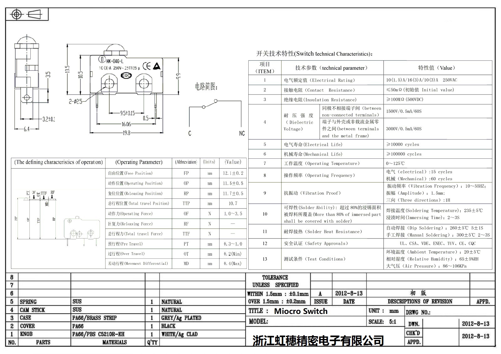 微動開關電氣特性