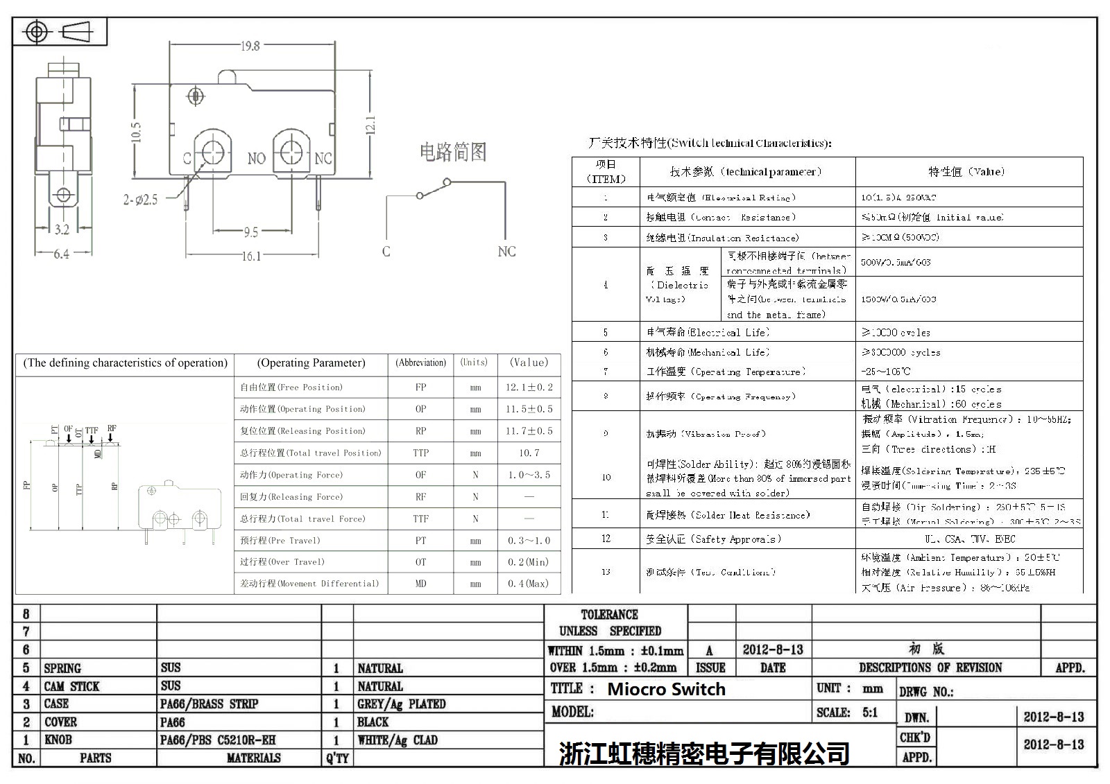 微動開關(guān)電氣特性