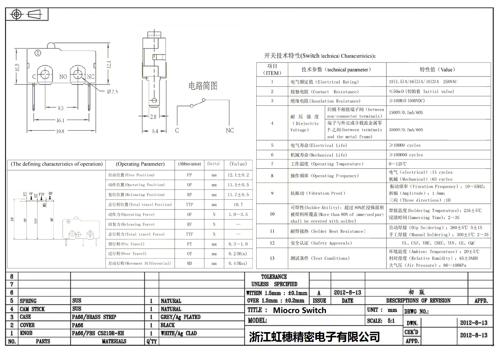 .請根據額定值電流、操作負載、驅動桿的種類、使用溫度等要求選擇合適型號的開關;