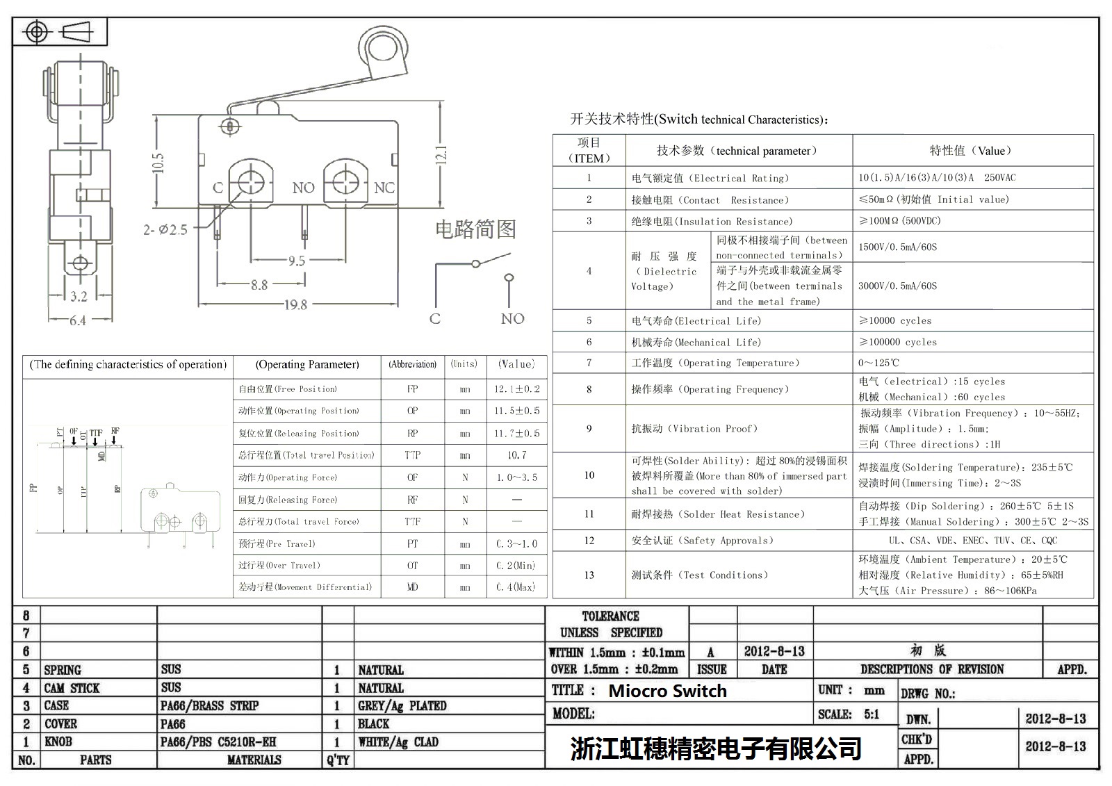 .請(qǐng)根據(jù)額定值電流、操作負(fù)載、驅(qū)動(dòng)桿的種類、使用溫度等要求選擇合適型號(hào)的開(kāi)關(guān);