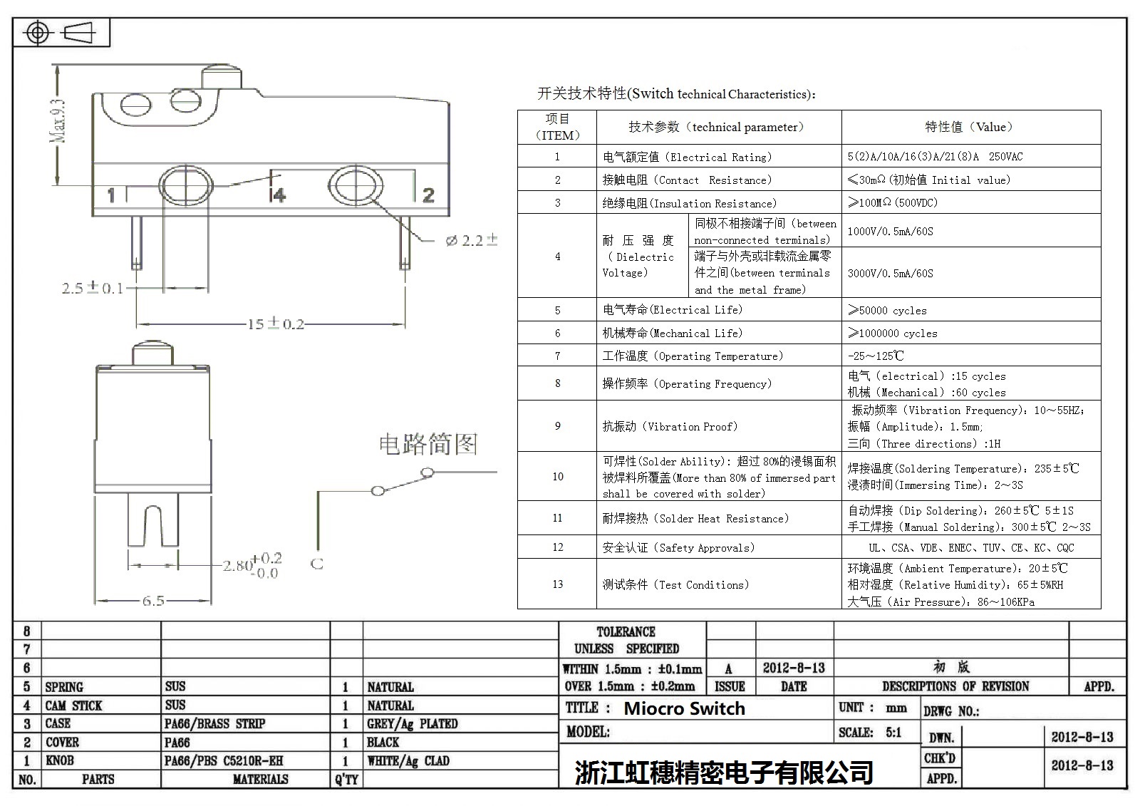 .請根據額定值電流、操作負載、驅動桿的種類、使用溫度等要求選擇合適型號的開關;