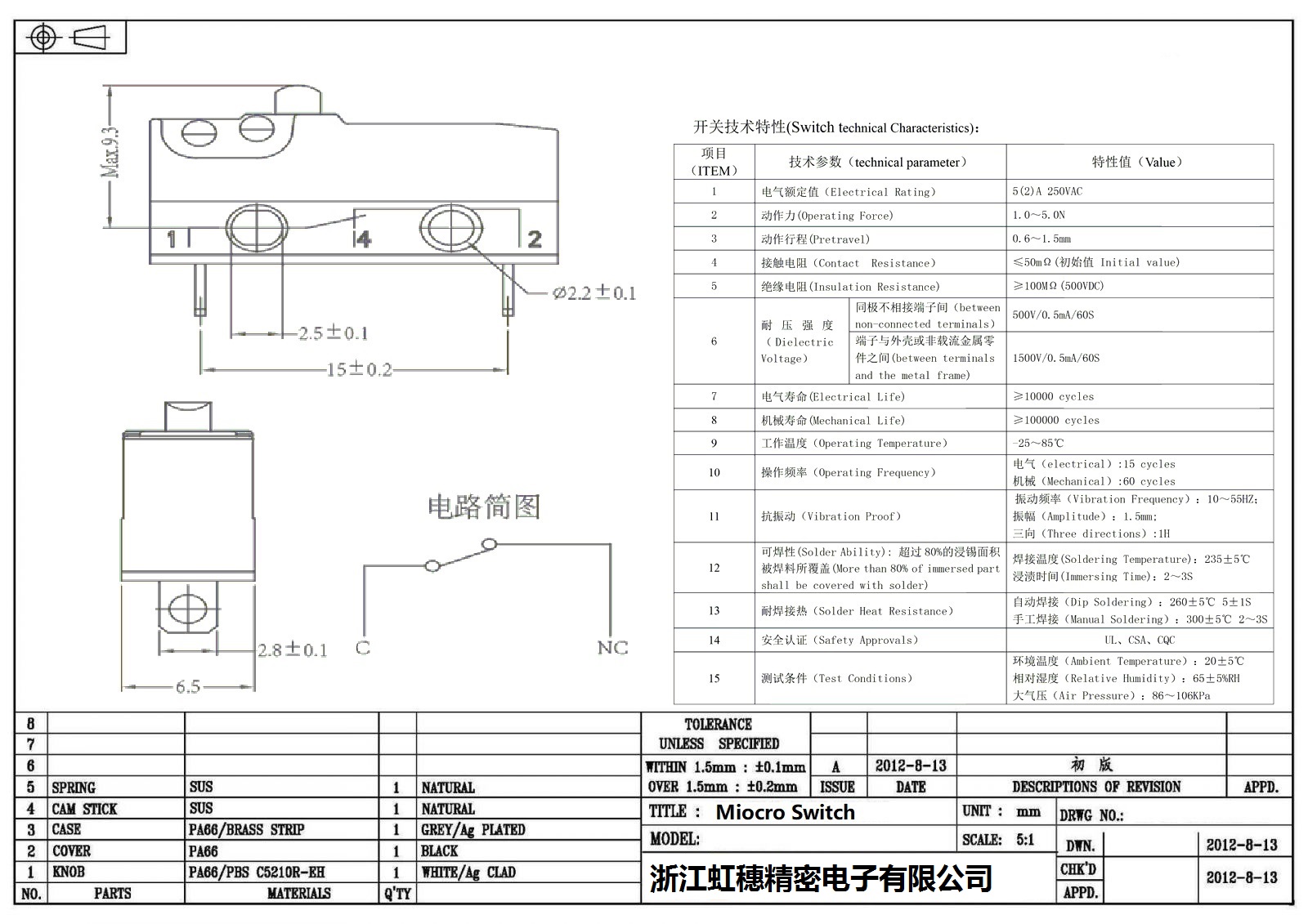 微動(dòng)開關(guān)電氣特性