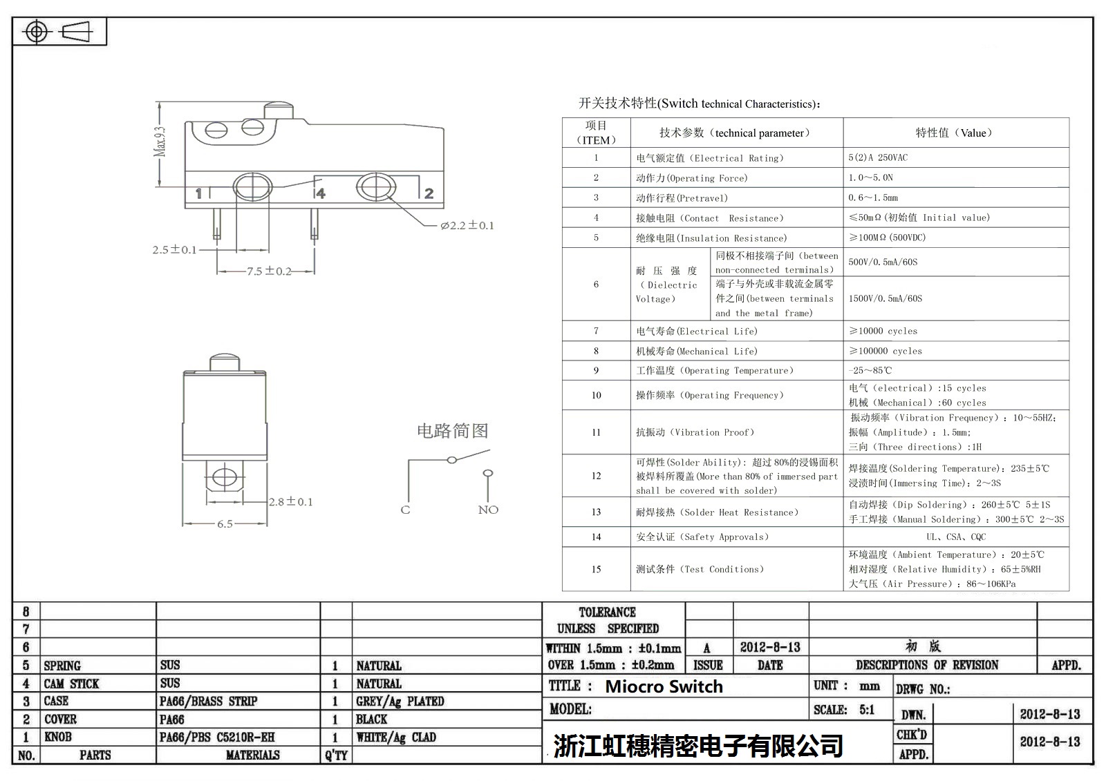 微動開關電氣特性