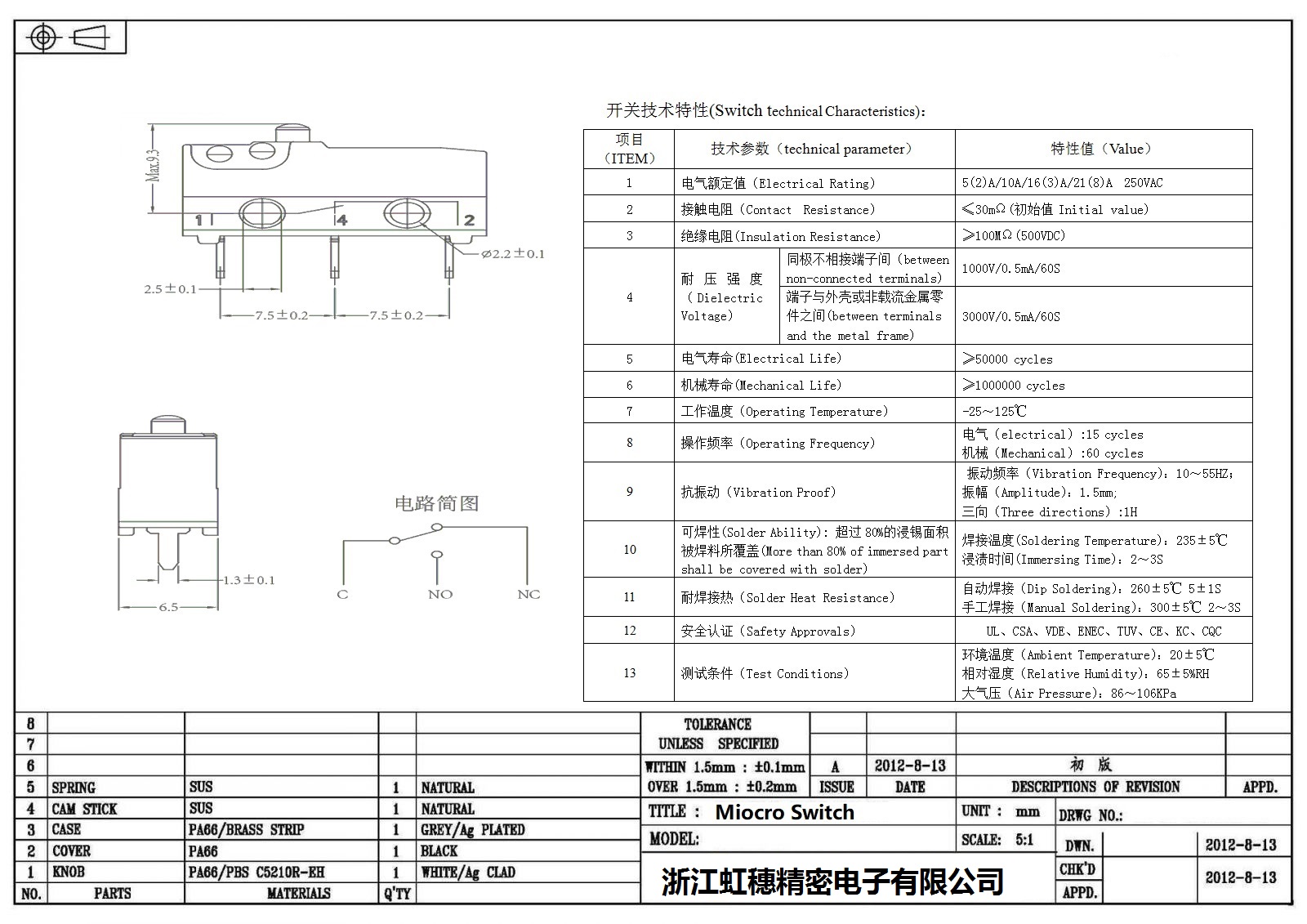 .請根據額定值電流、操作負載、驅動桿的種類、使用溫度等要求選擇合適型號的開關;