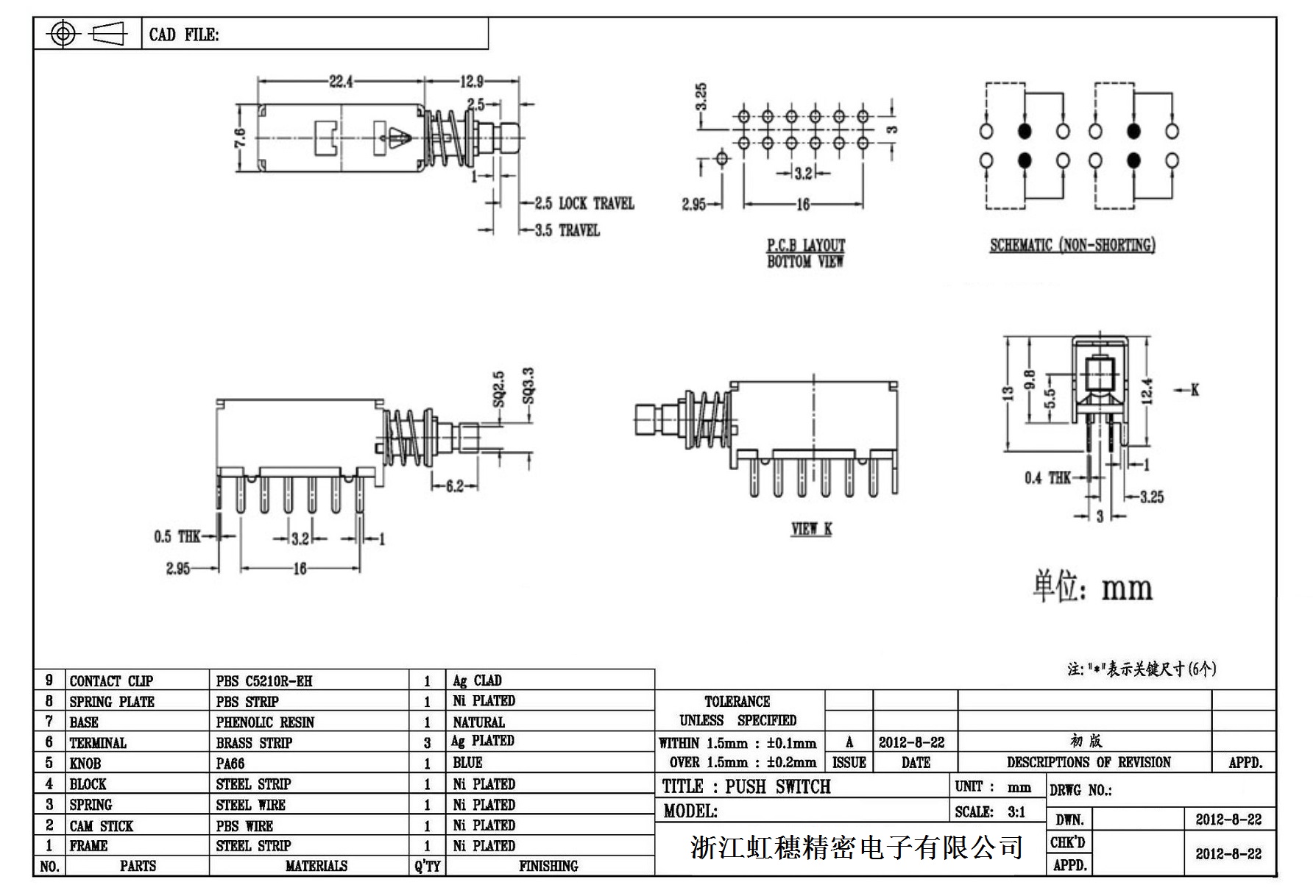 7. 操作力 : 160gf  可訂做
