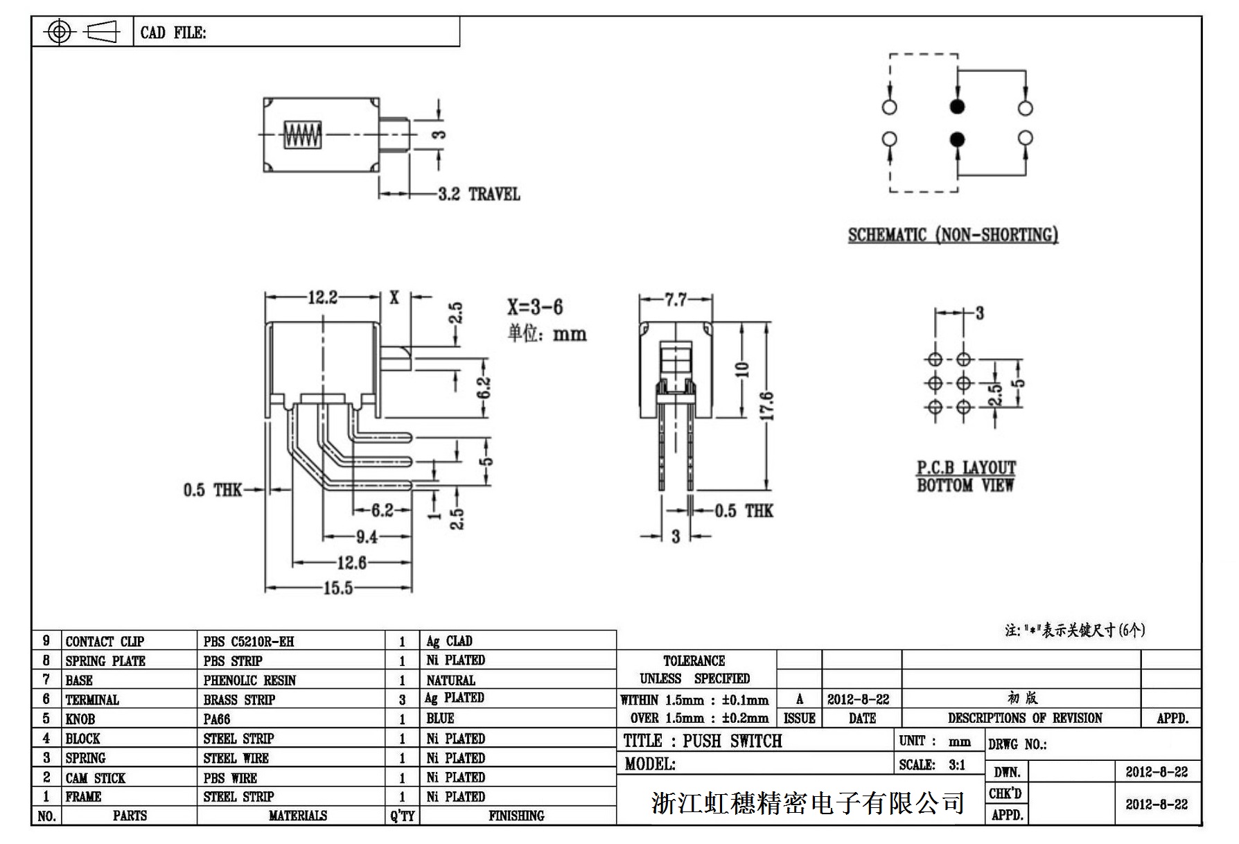 側按直鍵開關技術指標