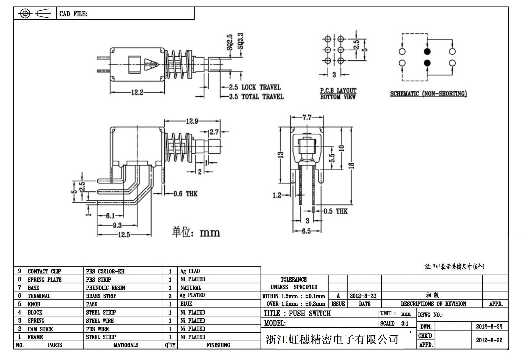 側按直鍵開關技術指標