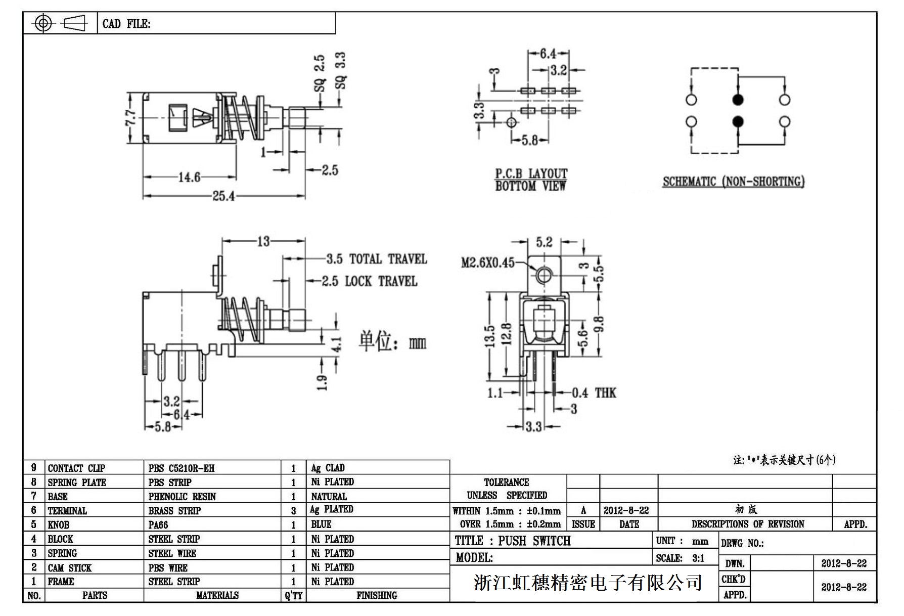 側按直鍵開關技術指標