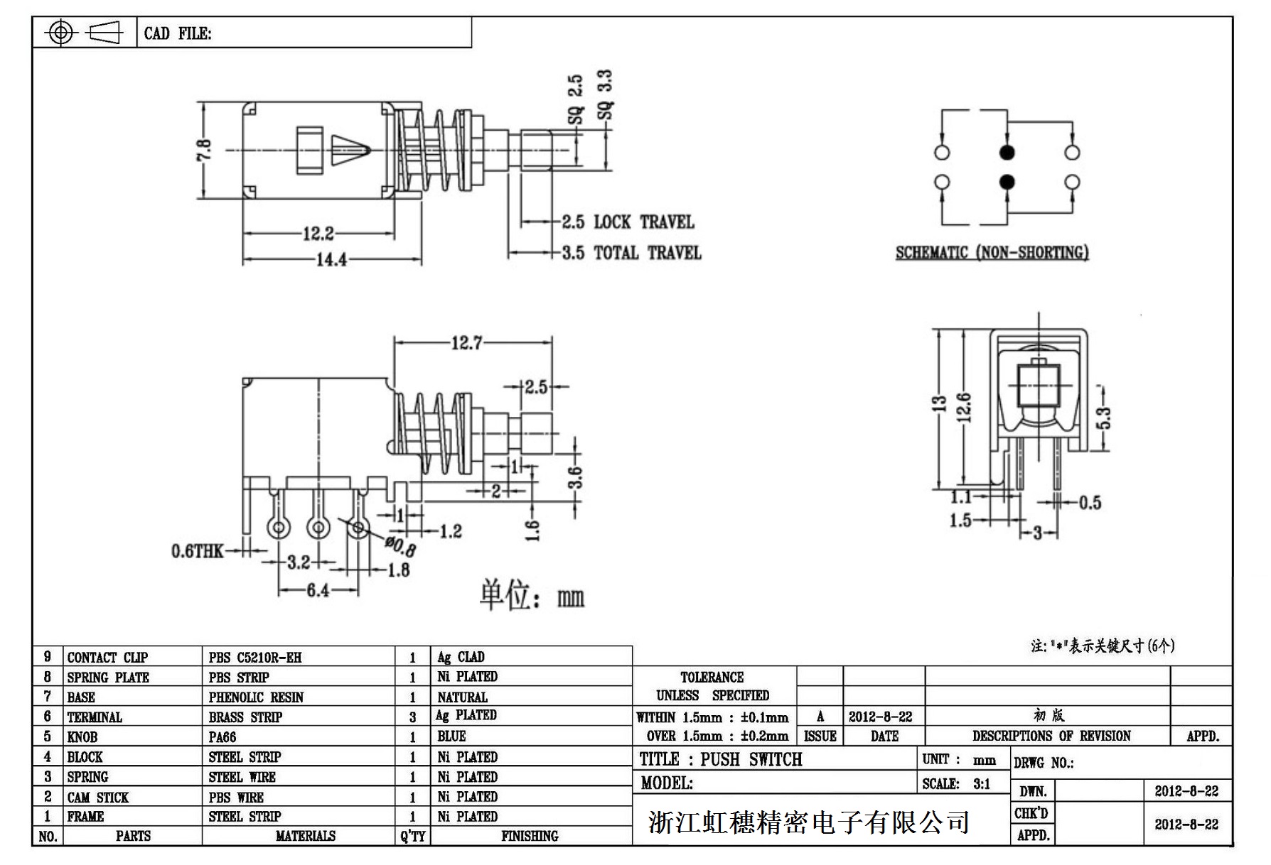 側(cè)按直鍵開關(guān)技術(shù)指標(biāo)