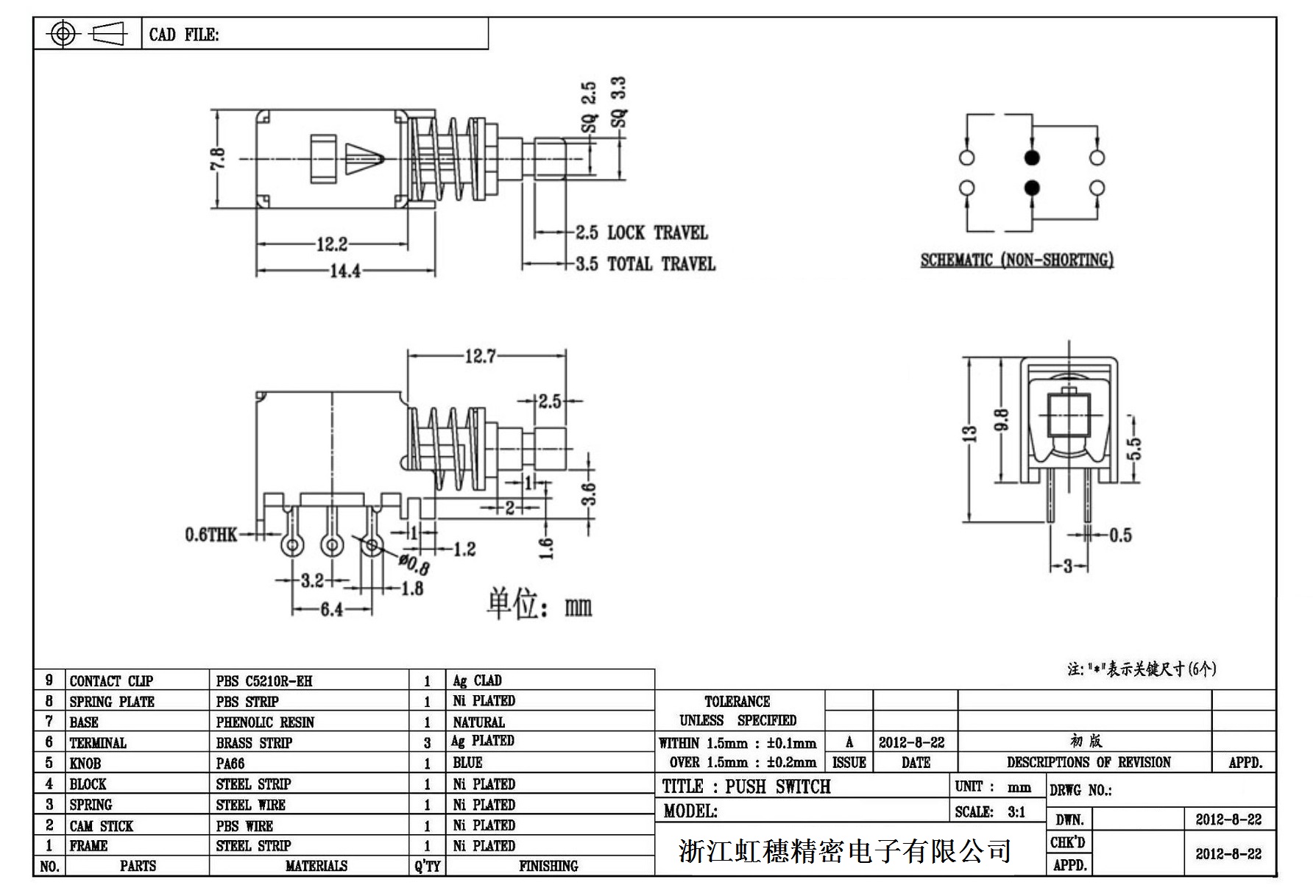 側按直鍵開關技術指標