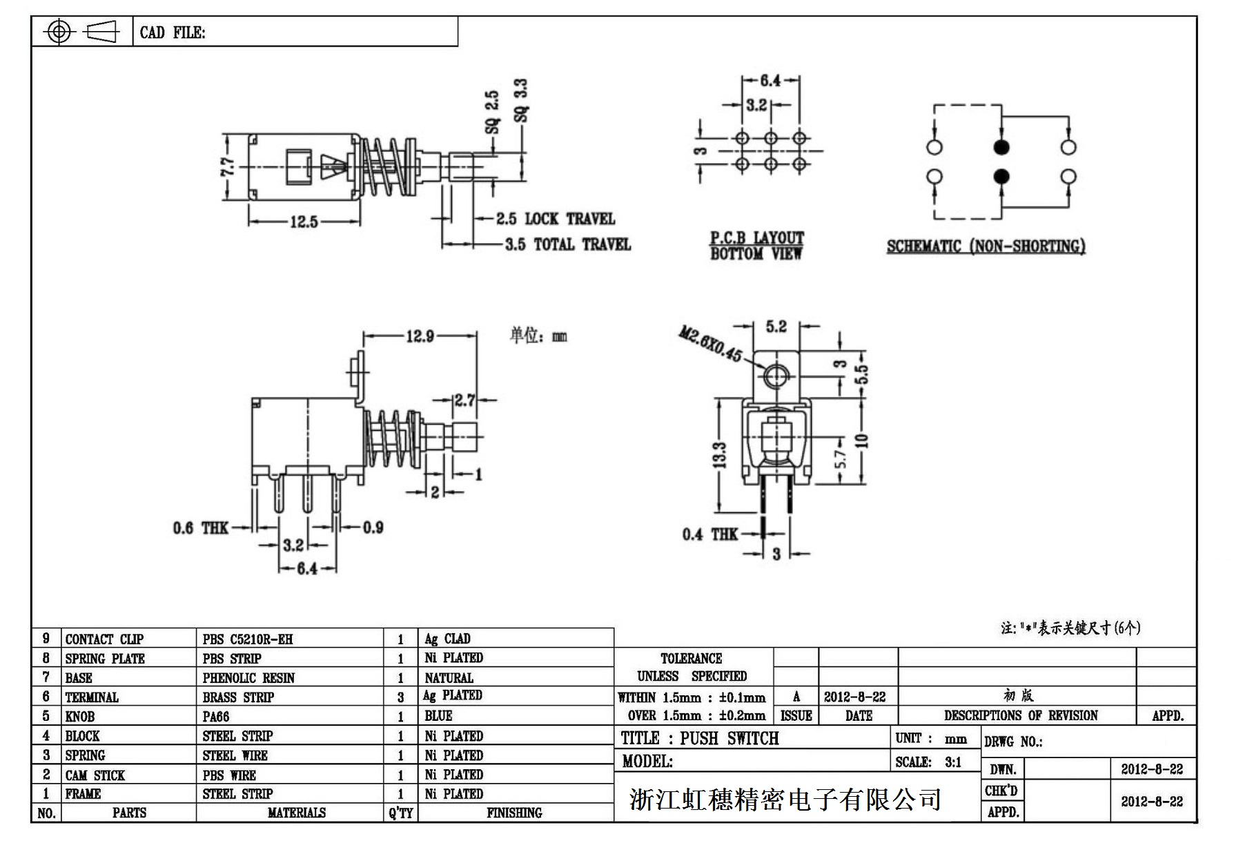 3. 絕緣阻抗: ≥100mΩ DC500V