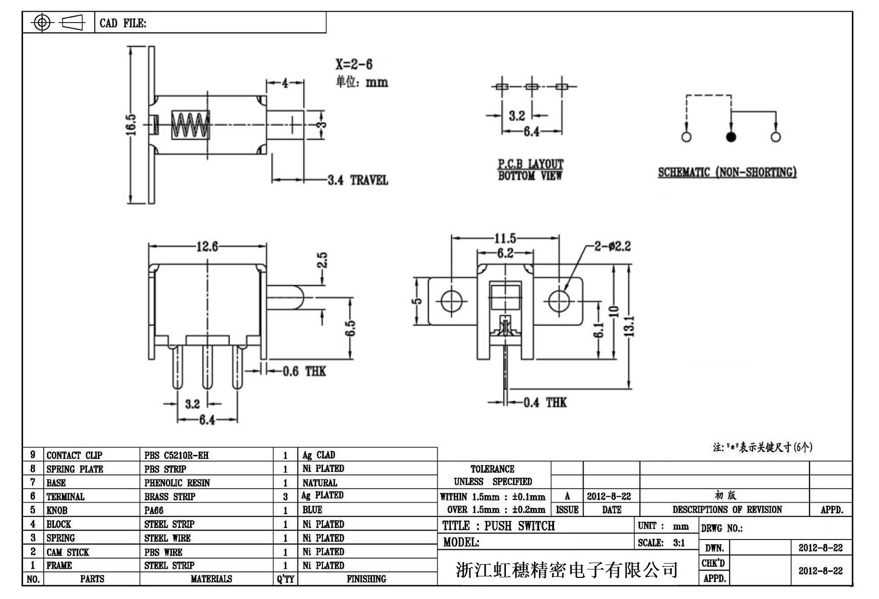 側(cè)按直鍵開關(guān)技術(shù)指標(biāo)
