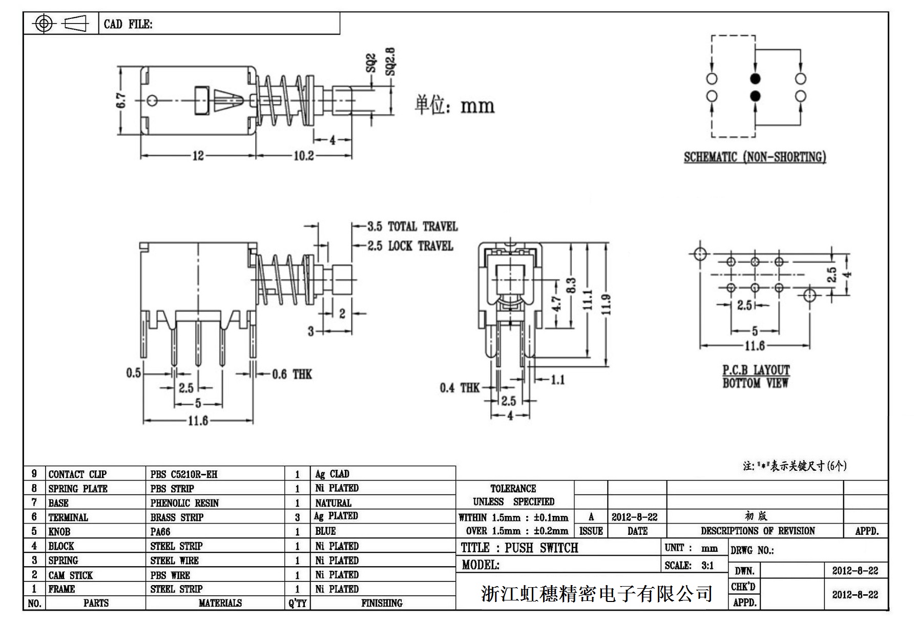 7. 操作力 : 160gf  可訂做