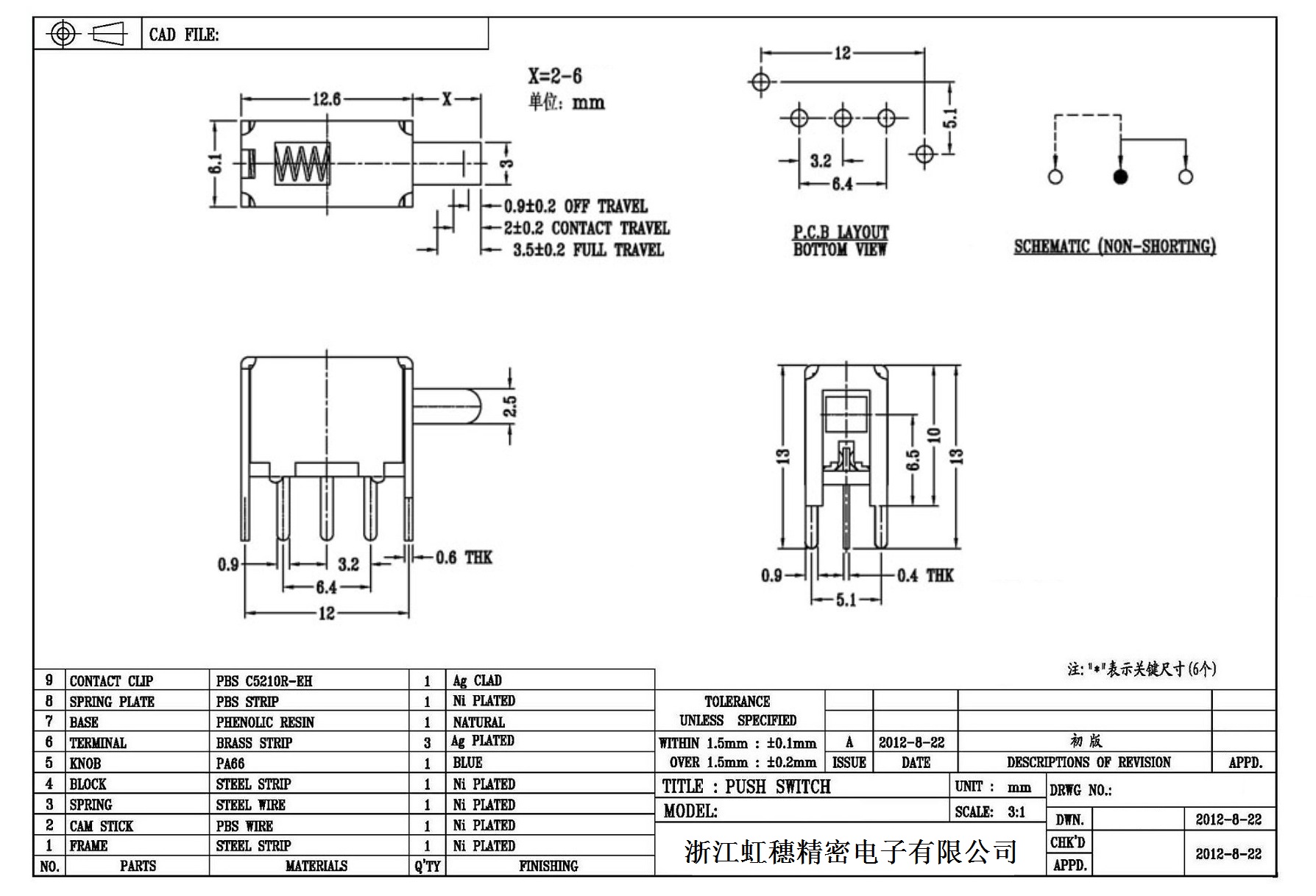 側(cè)按直鍵開關(guān)技術(shù)指標(biāo)